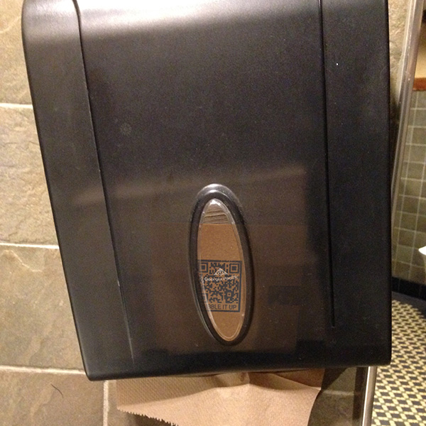 | Bill vs. the World CD #001 Paper Towel dispenser in Ruby Tuesday's men's room, Taunton, MA - 2013 |